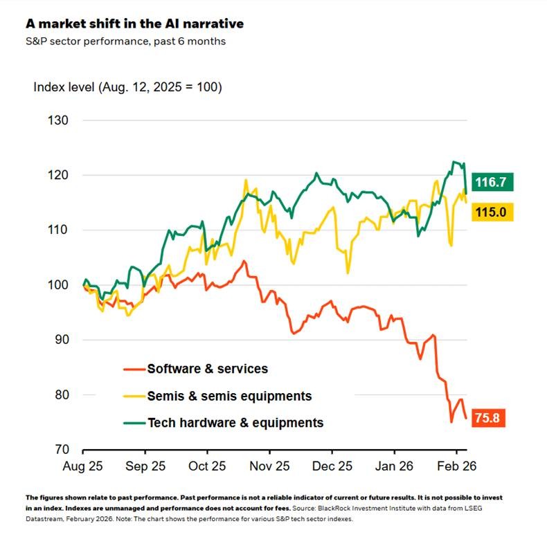 - A.I. disruption fears continue to put pressure on software stocks and tech companies.