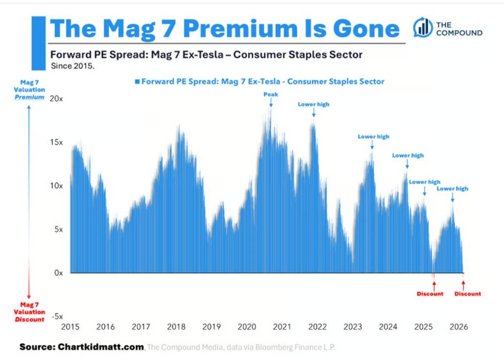 - The top 6 Mega-Cap tech companies are now cheaper than Consumer Staple. Wow!